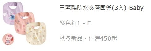 三麗鷗防⽔夾層圍兜(3⼊)-Baby (多色組1-F)