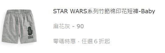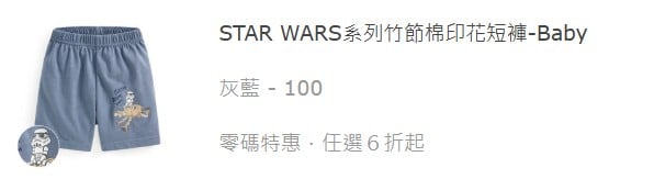 STAR WARS系列⽵節棉印花短褲-Baby